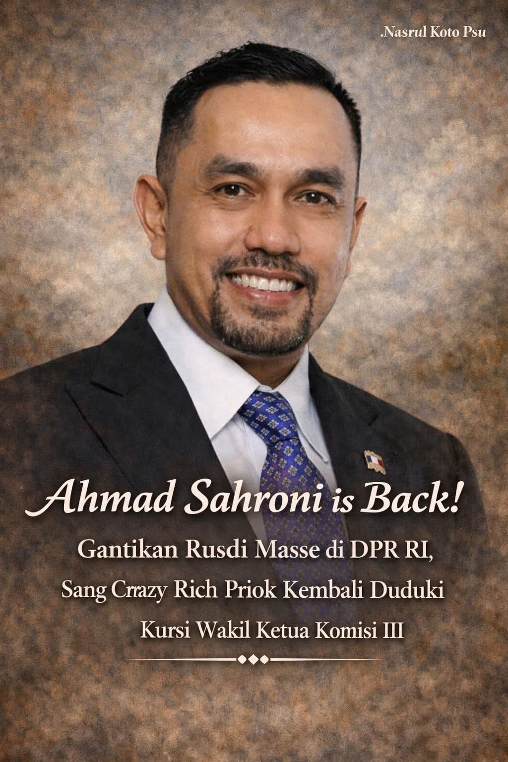 Ahmad Sahroni is Back! Gantikan Rusdi Masse di DPR RI, Sang Crazy Rich Priok Kembali Duduki Kursi Wakil Ketua Komisi III