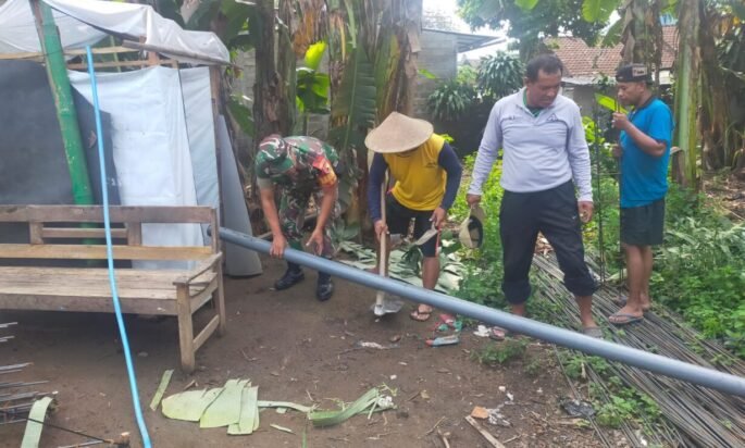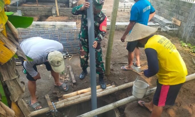 Blitar. Jelajahpenanews. Com – Babinsa Kelurahan Turi Koramil 0808/01 Sukorejo, Serda Eko Budiantoro, menunjukkan kepeduliannya terhadap warga binaan dengan turut serta dalam kegiatan renovasi MCK milik Bapak Ach. Muhadi. Kegiatan tersebut dilaksanakan di Jalan Turi Selatan RT. 01 RW. 03 Kelurahan Turi Kecamatan Sukorejo Kota Blitar, Kamis (26/3/2026).
