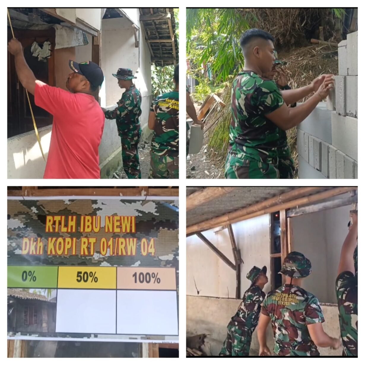 Program renovasi Rumah Tidak Layak Huni (RTLH) ini merupakan salah satu sasaran fisik utama dalam gelaran TMMD tahun ini. Di lokasi, terlihat para anggota TNI dengan penuh semangat mencopot material lama dan menyiapkan pondasi baru agar hunian Ibu Newi menjadi lebih sehat dan layak tinggal.