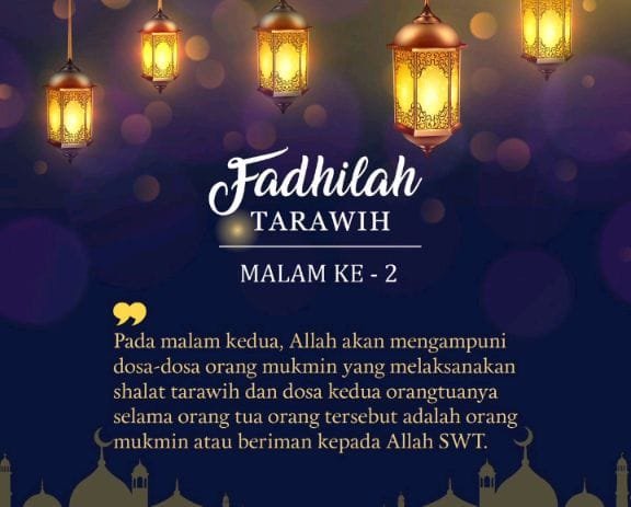 ”Orang yang shalat Tarawih pada malam ke-2, maka diampuni dosa-dosanya yang telah lalu dan yang akan datang.” (HR. Tirmidzi)