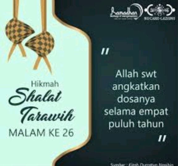 JAKARTA. Jelajahpenanews. Com – Ahad,(15/3/2026), Memasuki pengujung Ramadan, keutamaan shalat Tarawih semakin istimewa. Pada malam ke-26, berdasarkan kitab Durratun Nashihin, Allah SWT menjanjikan ganjaran luar biasa berupa peningkatan pahala setara dengan 40 tahun ibadah.