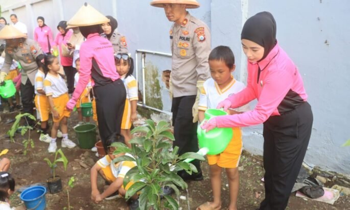Penanaman pohon di TK Bhayangkari Kraksaan diharapkan dapat menjadi sarana edukasi bagi anak-anak sejak dini tentang pentingnya mencintai lingkungan.