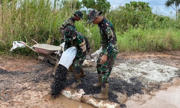Melihat kondisi tersebut, personel Satgas Yonif 123/RJW berinisiatif melakukan perbaikan sementara melalui gotong royong bersama warga. Upaya ini dilakukan sebagai bentuk kepedulian terhadap kelancaran aktivitas masyarakat sekaligus untuk mengurangi hambatan distribusi logistik yang selama ini terganggu.