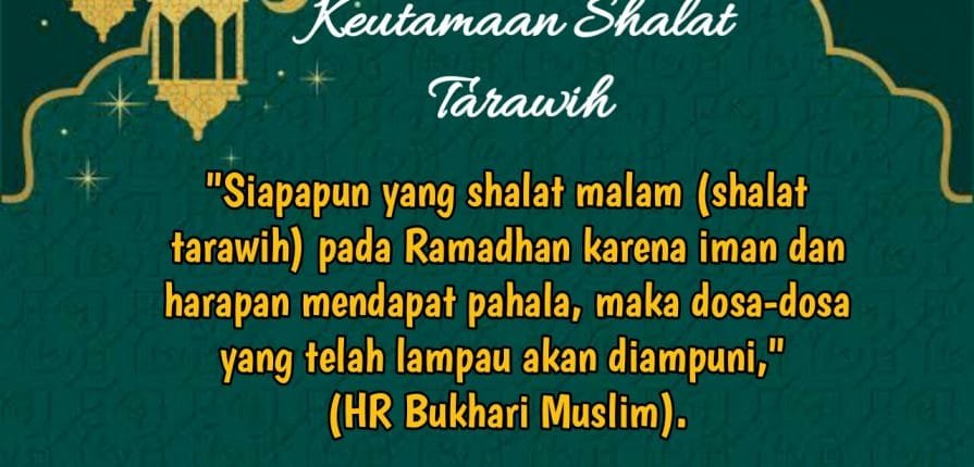 ”Barangsiapa yang shalat tarawih di bulan Ramadhan karena iman dan harapan pahala, maka dosa-dosanya yang telah lampau akan diampuni.” (HR. Bukhari dan Muslim)