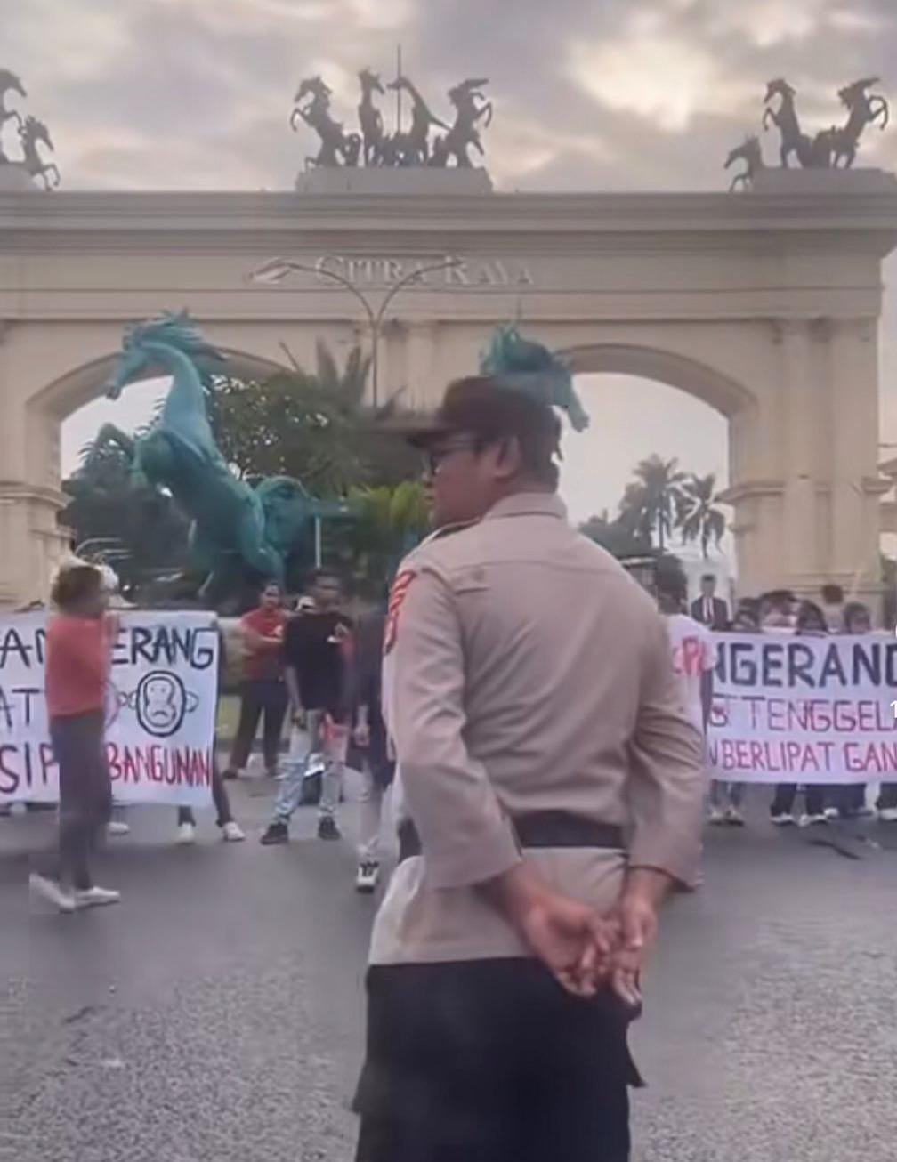 Kabupaten Tangerang,jelajahpenanews.com – Provinsi Banten – Sejumlah mahasiswa menggelar aksi unjuk rasa di depan gerbang Perumahan Citra Raya, Kecamatan Cikupa, Kabupaten Tangerang, Provinsi Banten. Aksi tersebut dilakukan sebagai bentuk keprihatinan dan protes terhadap berbagai persoalan yang dinilai terjadi dalam tata kelola pemerintahan Kabupaten Tangerang.