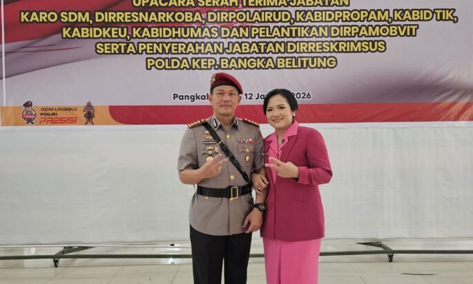 Pangkalpinang.jelajahpenanews.com – Kombes Pol Dr. Ronald Fredy C. Sipayung, S.H., S.I.K., M.H., resmi menjabat sebagai Direktur Resnarkoba Polda Kepulauan Bangka Belitung. Perwira tinggi yang pernah memimpin Polres Simalungun ini dilantik dalam upacara serah terima jabatan (sertijab) sejumlah Pejabat Utama Polda Babel di Gedung Tribrata, Mapolda Babel, Senin (12/1/2026) pagi.