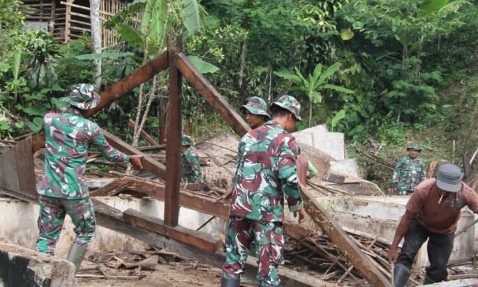 Seperti salah satu rumah warga milik Mbah Sutrisno (75) warga Dusun Barurejo Desa Krisik pada hari ini dilaksanakan pembongkaran yang dilakukan oleh Satgas TMMD Kodim 0808/Blitar, Rabu (11/02/2026).