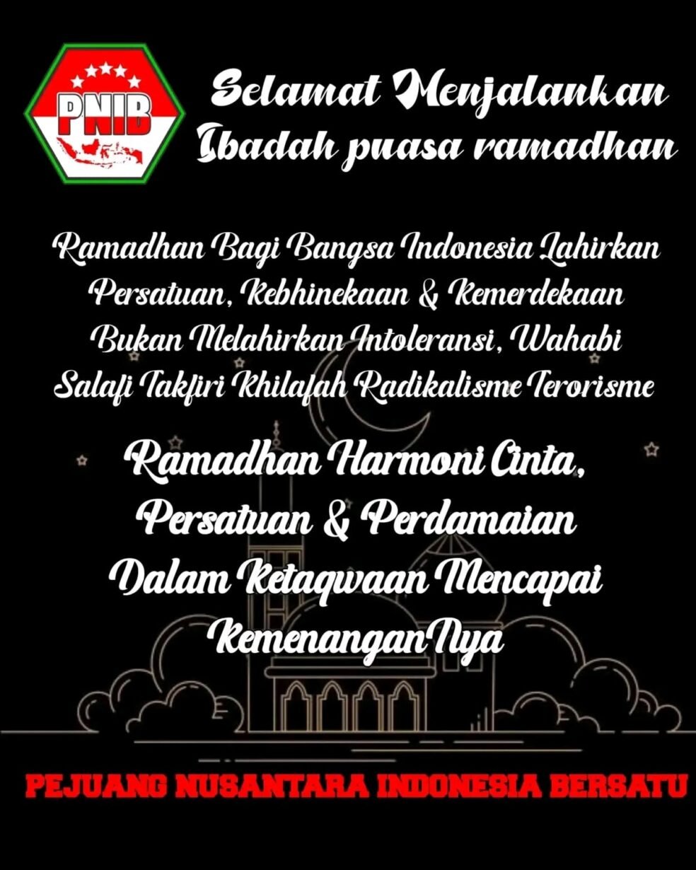 Pejuang Nusantara Indonesia Bersatu (PNIB) mengajak seluruh elemen masyarakat menjadikan bulan suci Ramadhan sebagai momentum untuk memperkuat semangat perdamaian, menjaga persatuan Indonesia, serta menempatkan keselamatan bangsa sebagai prioritas utama dalam kehidupan berbangsa dan bernegara.