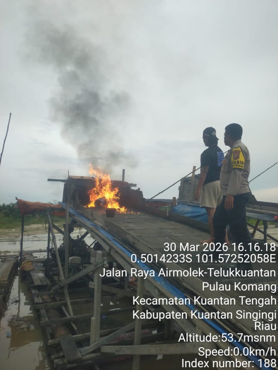 KUANTANSINGINGI, jelajahpenanews.com – Jajaran Polsek Kuantan Tengah bersama Sat Reskrim Polres Kuantan Singingi (Kuansing) kembali melakukan penertiban terhadap aktivitas Penambangan Emas Tanpa Izin (PETI) di wilayah hukumnya, Senin sore (30/3/2026).