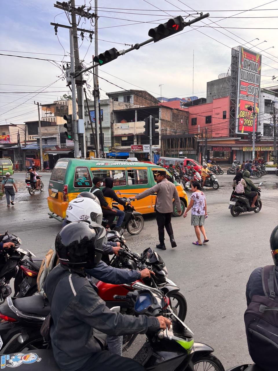Dalam pelaksanaannya, petugas tidak hanya melakukan pengaturan arus kendaraan, tetapi juga membantu anak-anak sekolah menyeberang jalan, mengingatkan pengguna motor untuk menggunakan helm, serta memberikan imbauan kepada pengendara agar tertib dan mematuhi rambu-rambu lalu lintas.