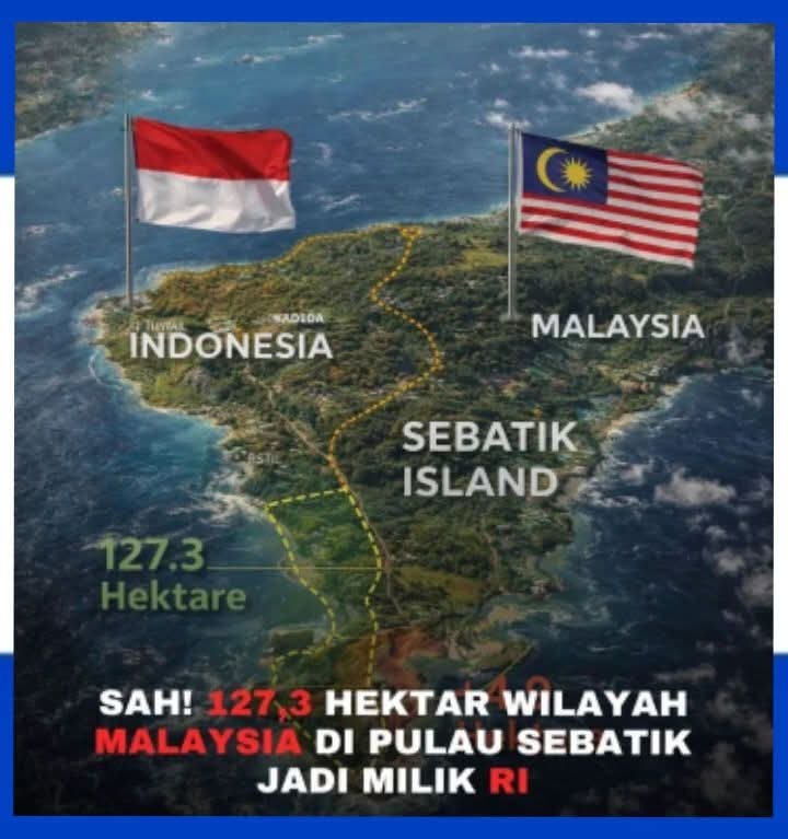 Jakarta. Jelajahpenanews. Com – Indonesia secara resmi menambah wilayah kedaulatannya di Pulau Sebatik, Kalimantan Utara, seluas 127,3 hektare setelah tercapainya kesepakatan batas darat dengan Malaysia.