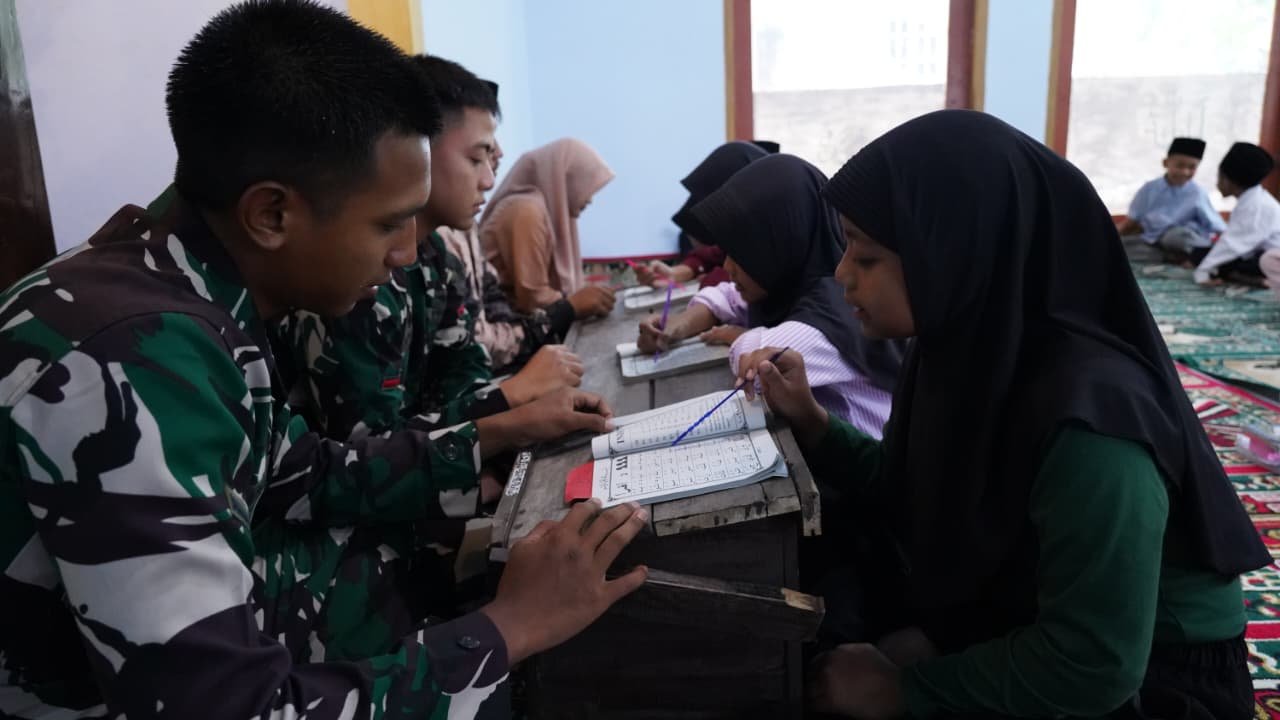 Blitar.Jelajahpenanews.com  – Dalam rangka mewujudkan pembangunan fisik maupun nonfisik melalui program TNI Manunggal Membangun Desa (TMMD), anggota yang tergabung dalam Satgas TMMD ke-127 Kodim 0808/Blitar meluangkan waktu untuk mengajar anak-anak mengaji membaca Alquran. Kegiatan tersebut dilaksanakan di MQQ Al Muhaimin Dusun Barurejo Desa Krisik Kecamatan Gandusari Kabupaten Blitar, Jumat (13/2/2026).