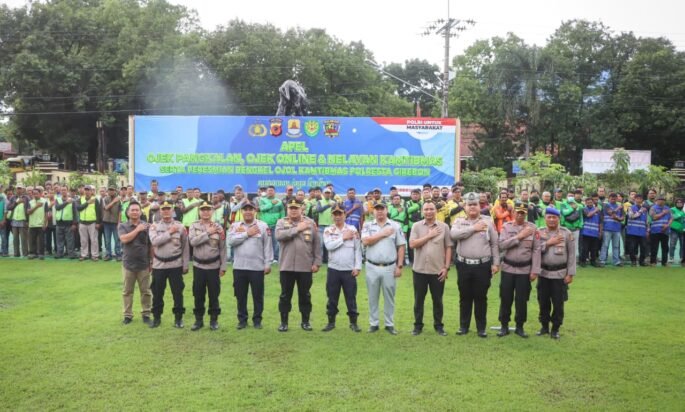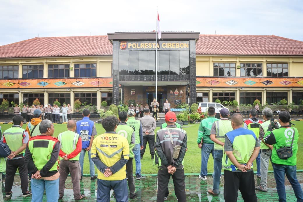Cirebon.JelajahPenaNews.Com – Polresta Cirebon menggelar Apel Ojek Pangkalan, Ojek Online, dan Nelayan Kamtibmas Polresta Cirebon bertajuk “Sauyunan Jaga Lembur”, Jumat (30/1/2026). Kegiatan tersebut berlangsung di Lapangan Apel Mapolresta Cirebon, Jl. Raden Dewi Sartika No. 1, Sumber, Kabupaten Cirebon.