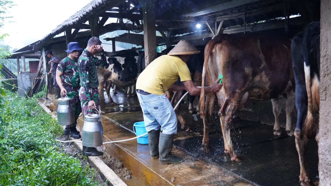 Kegiatan tersebut berlangsung di Dusun Barurejo, Desa Krisik Kecamatan Gandusari Kabupaten Blitar, Sabtu (14/2/2026). Anggota Satgas TMMD Ke-127 tampak berbaur bersama warga, membantu aktivitas keseharian peternak sapi perah setelah menyelesaikan sasaran fisik pembangunan.