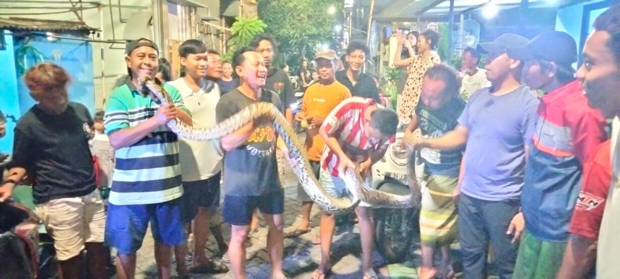 Dengan sigap dan penuh kehati-hatian, warga bersama anggota Kartar langsung bergerak cepat (gercep) menangkap ular tersebut. Setelah melalui proses yang cukup menegangkan, ular piton akhirnya berhasil diamankan. Berdasarkan perkiraan warga, panjang ular mencapai sekitar 5 meter, sementara beratnya belum dapat dipastikan.